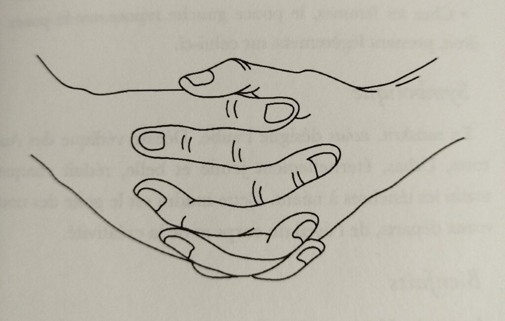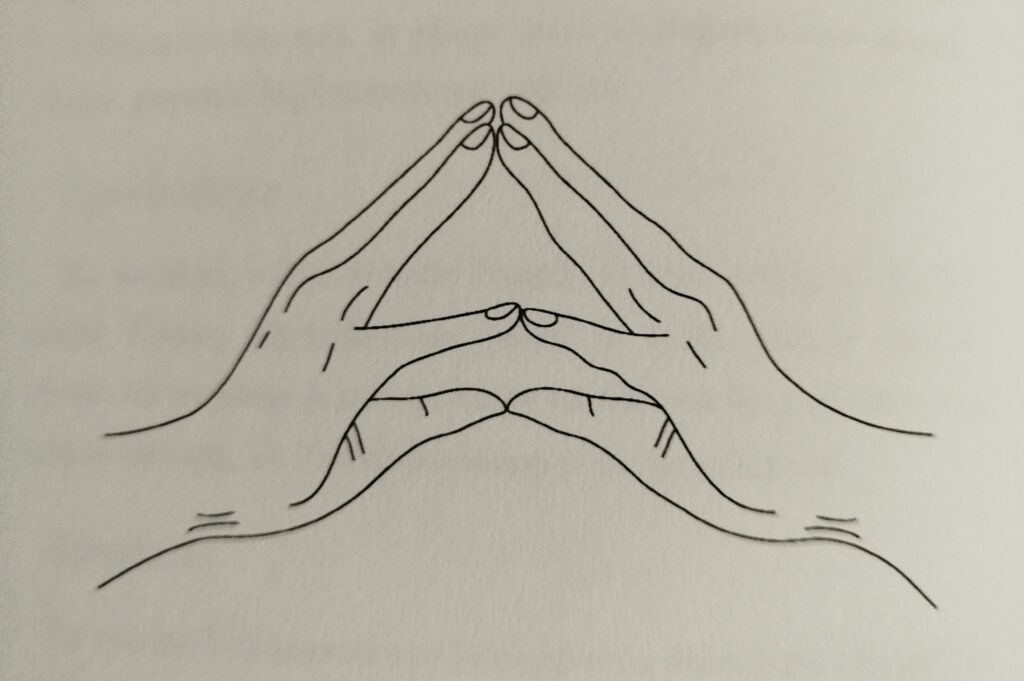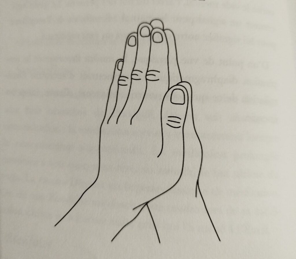 🖐 Réalisation : Entrelacer les doigts, pointer les index vers l’avant en les joignant. Les pouces se croisent sous les mains.