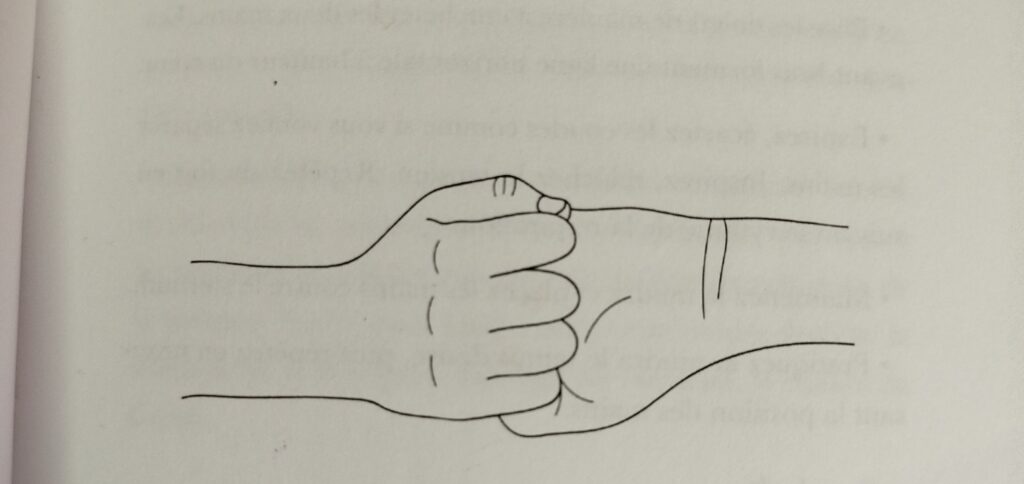 🖐 Réalisation : Poser la main droite dans la main gauche, paumes vers le haut, pouces qui se touchent légèrement.