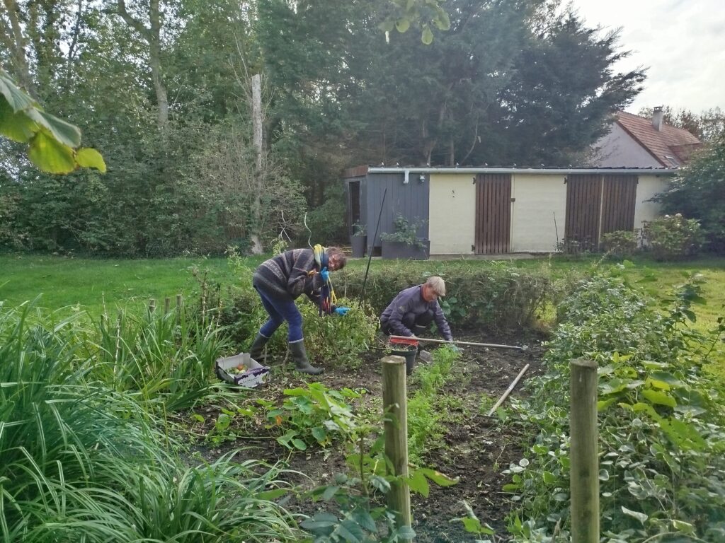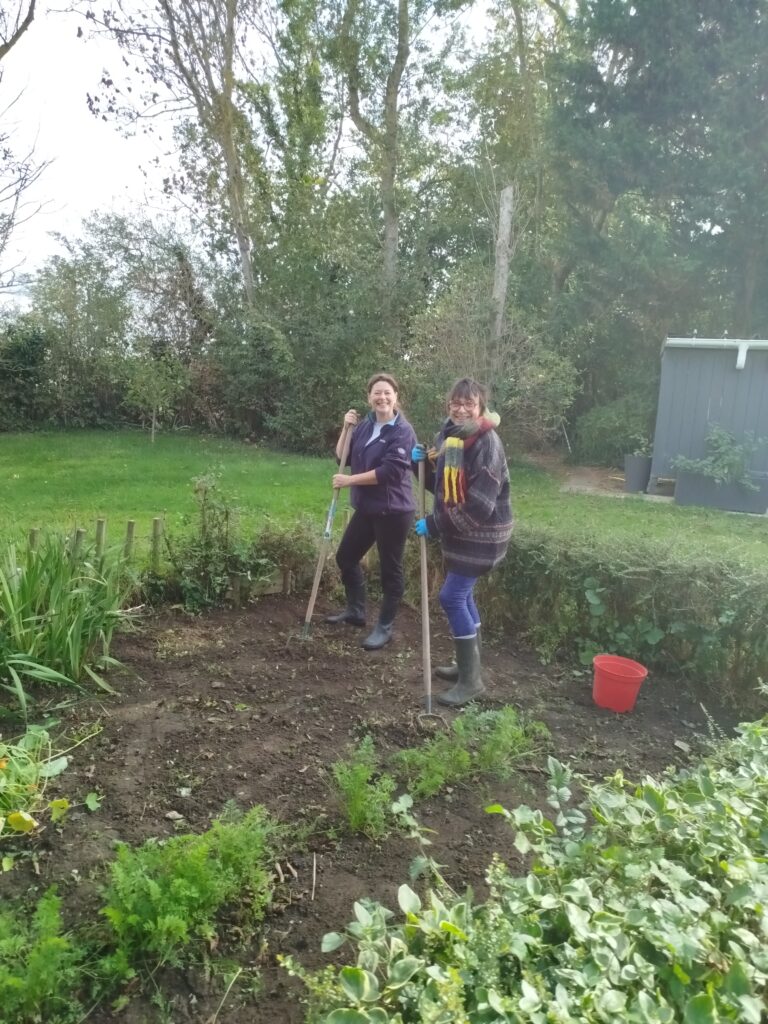 Fin septembre, Nathalie, Élise et Béatrice ont clôturé la saison au potager associatif en nettoyant la parcelle ✨.